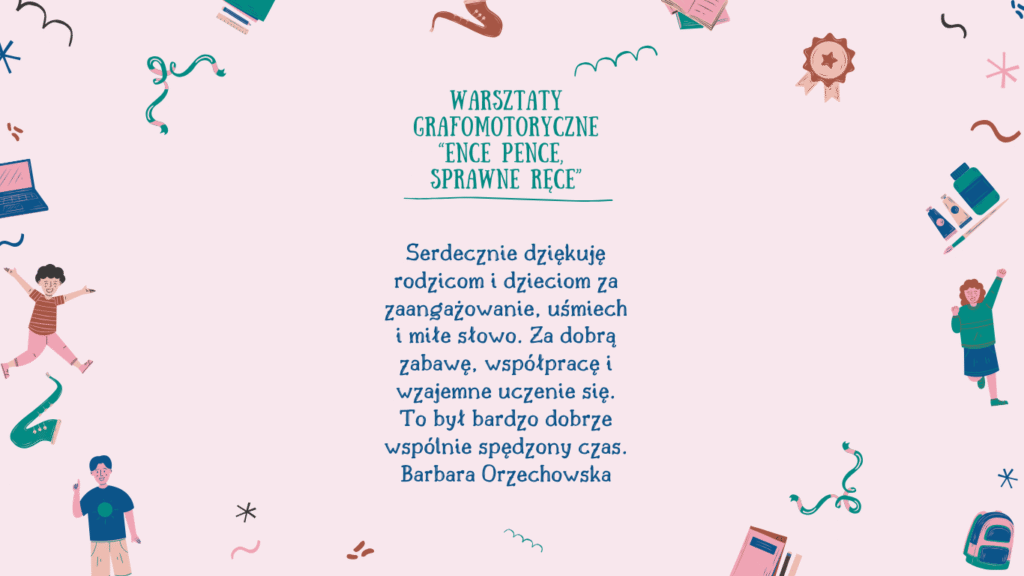 Podziękowania – warsztaty grafomotoryczne “Ence-pence, sprawne ręce” dla klas I-III