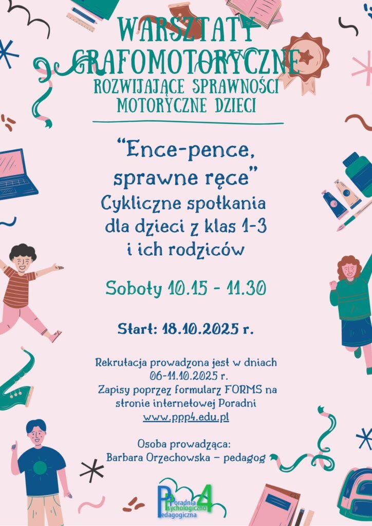 warsztaty grafomotoryczne “Ence-pence, sprawne ręce” dla klas I-III